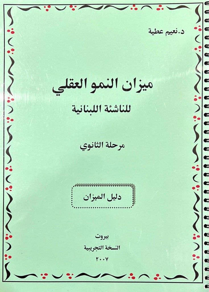 A Scale of Intelligence for Children in Lebanon, Faculty of Education, Lebanese University, Beirut, 1st Edition: 1965. 2nd Edition: 1972. Revalidated: 1982